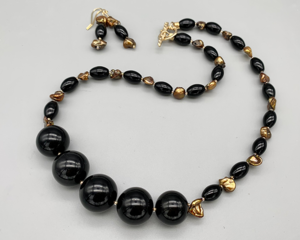 Necklace set | Rainbow obsidian focal rounds, black onyx oval...