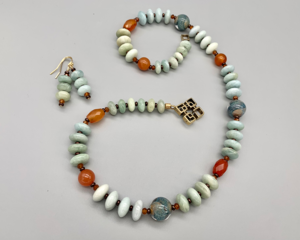 Necklace set | Artisan lampwork focal rounds, sea sky palette...