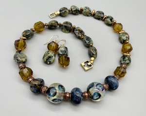 Necklace Set | Raku boulders, vintage glass beads, Cherry Bra...