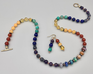Necklace set | Artisan rainbow swirl lampwork rounds, ceramic...