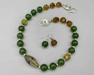 Necklace set | Green jade rounds, vintage lampwork focal and ...
