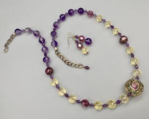 Necklace Set | Artisan lampwork focal, stunning amethyst roun...