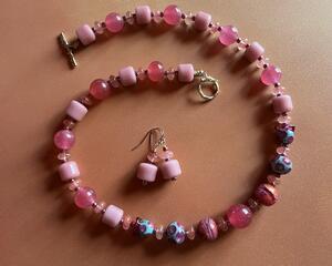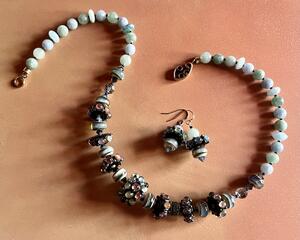 Necklace set | Artisan patterned lampwork focal beads, new ja...