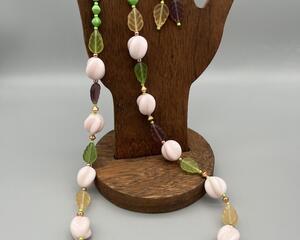 Necklace set | Artisan floral lampwork beads, amethyst, chalc...