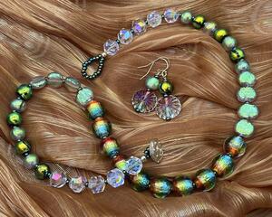 Necklace set | Rainbow glitz, sparkling dichroic glass, facet...