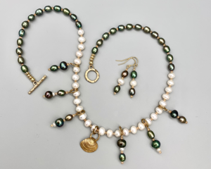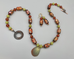 Necklace set | Bronze artisan shell pendant, Cherry Brand mid...