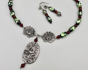 Necklace set | Pewter pond pendant and lotus connectors, mid-...