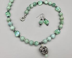 Necklace Set | Lodolite/Shaman's Dream rounds, moss green fre...
