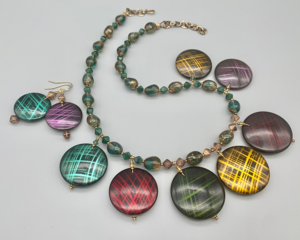 Necklace set | Rainbow plaid 1980s upcycled plastic resin dis...