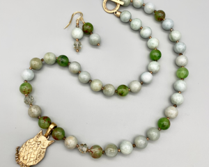 Necklace Set | Burma jade rounds, artisan owl pendant, vintag...