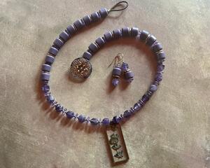 Necklace set | Lavender in the Village, lavender pendant, fac...